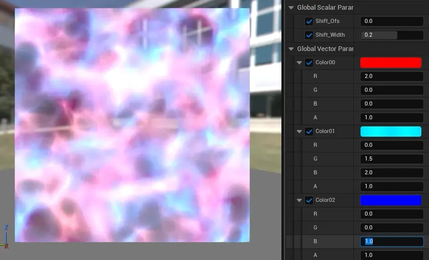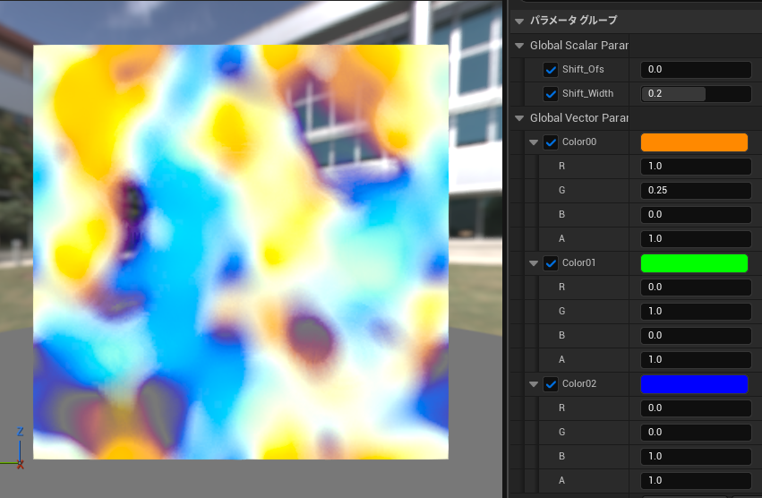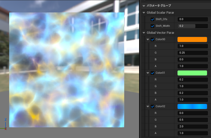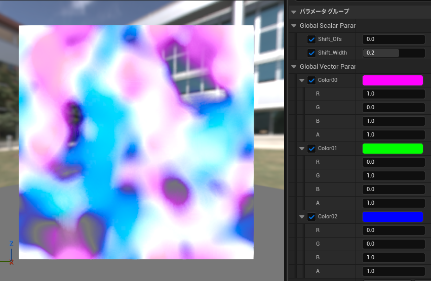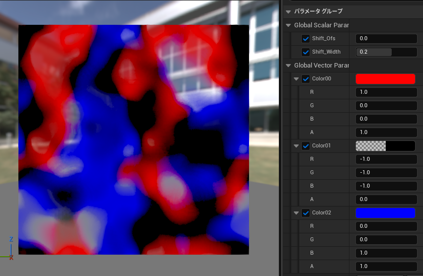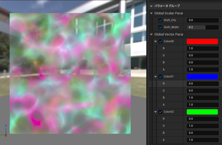 ・[Shift Width]をずらした状態で[Shift Ofs]を操作することで、色差がついた状態でテクスチャをシフトできます。